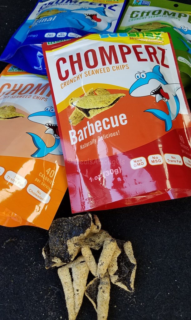 Chomperz Crunchy Seaweed Chips in Barbecue, Jalapeno, Original and Onion – These are the a crunchy version of seaweed. These are also vegan, non-GMO verified, contain no MSG, no trans fats and no cholestrol.