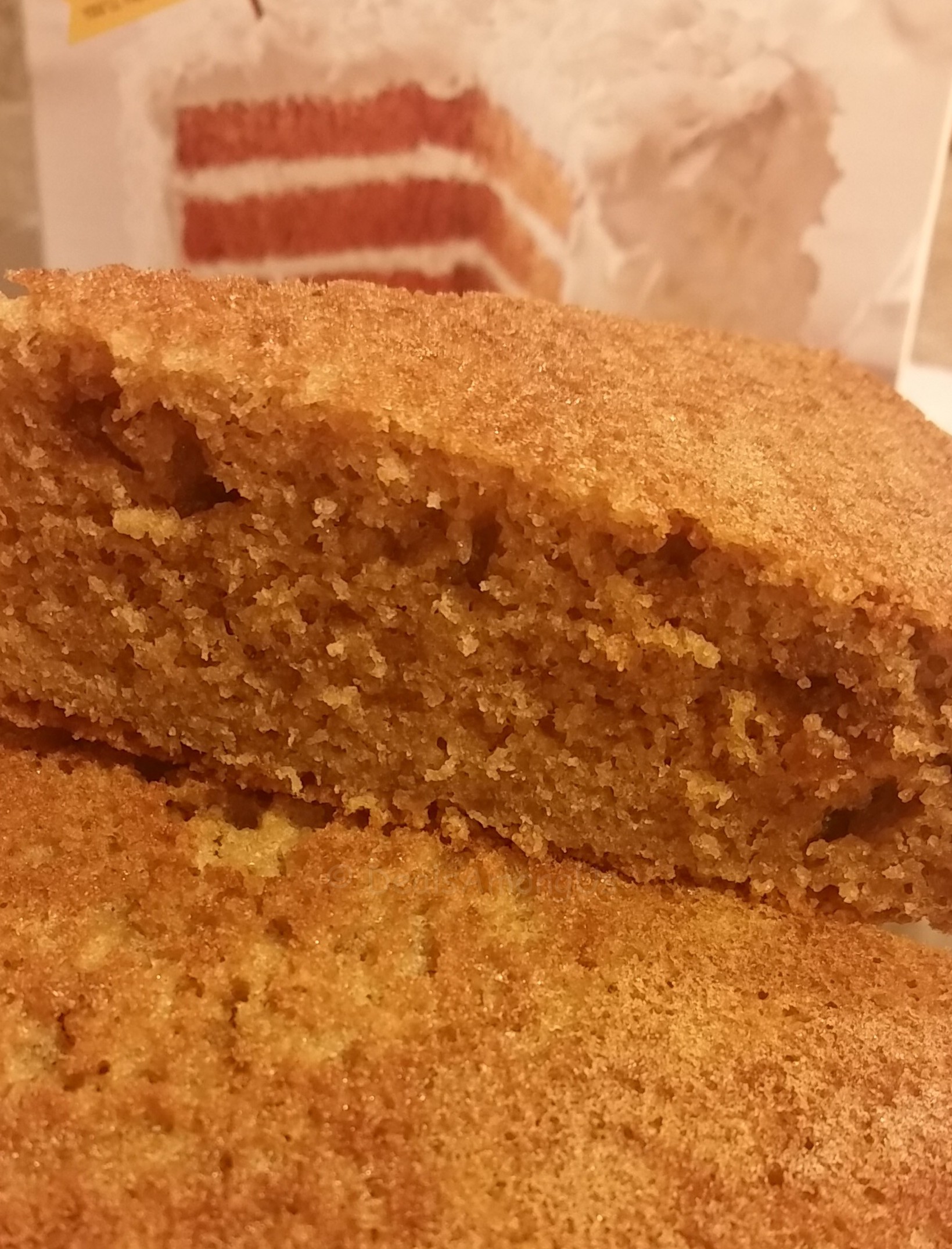 Inside of bagWhen you open the package, you find the dry mix and are required to add only a couple of ingredients (eggs, water, oil and vanilla). I added the wet and mixed the ingredients, the batter was not lumpy and poured easily into the glass pan I used to bake my cake in. The instructions recommended to bake the cake for 30-35 minutes at 350 degrees. I cooked mine at 350 degrees, but only needed 27 minutes to achieve the brown I got. I removed the cake from the pan when the cake had cooled and when I cut into the cake, it was crunchy on the side and moist in the center – almost a perfect bake!