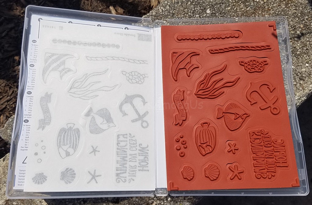 I received the ocean themed Seaside Shore Wood-Mounted Stamp Set by Stampin’ Up for review. This 15 stamp collection is available as a wood-mount collection as well as a clear-mount stamp set.