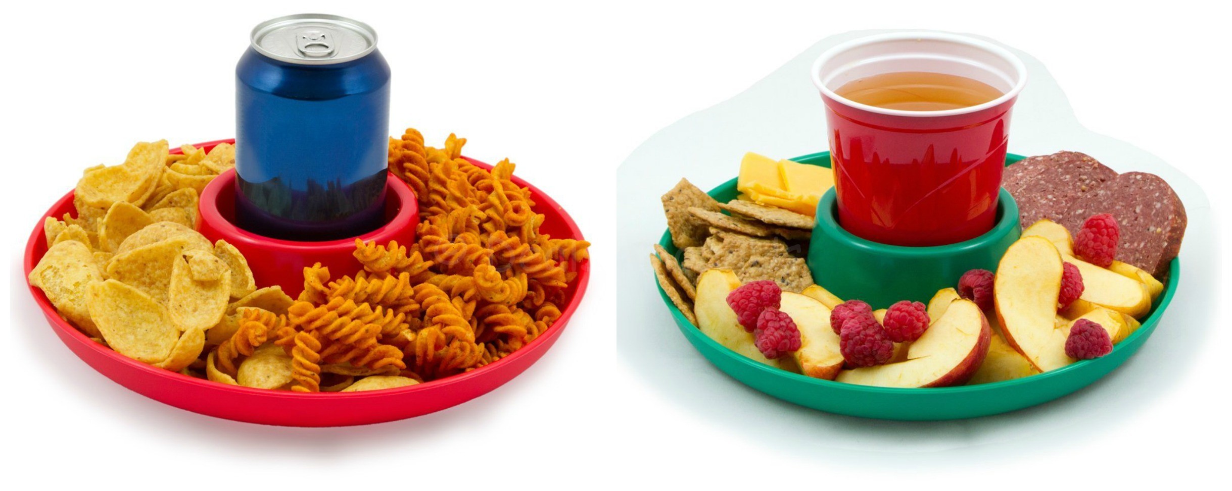 There are few options in the picnic plate type product area, and for a member of a barbecue loving family this can be limiting. Since I am all about truth and disclosure around here I will share a story that was quite embarrassing. I am sure we all have done the precarious plate and cup dance at a BBQ. When my husband and I were dating, it was one of my first large-scale family functions (imagine about 30 people witnessed my moment) and I was doing this precarious balancing act when I tripped and down I went, plate over cup. Needless to say I was embarrassed and NEVER want a repeat of that event and lucky for me I may never have to with my latest discovery: The Great Plate!