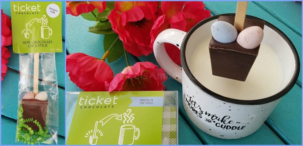 Ticket Sticks – French Truffle and Belgian Milk Chocolate: These are “Hot Chocolate on a Stick” which come in a variety of flavor combination (17 flavors to be exact). I was sent a couple sticks including French Truffle and Belgium Chocolate. It is easy to use, needing only heated chocolate, placing the entire block in the warmed milk, waiting a few moments, mix and enjoy. Also, don’t forget to lick the stick.