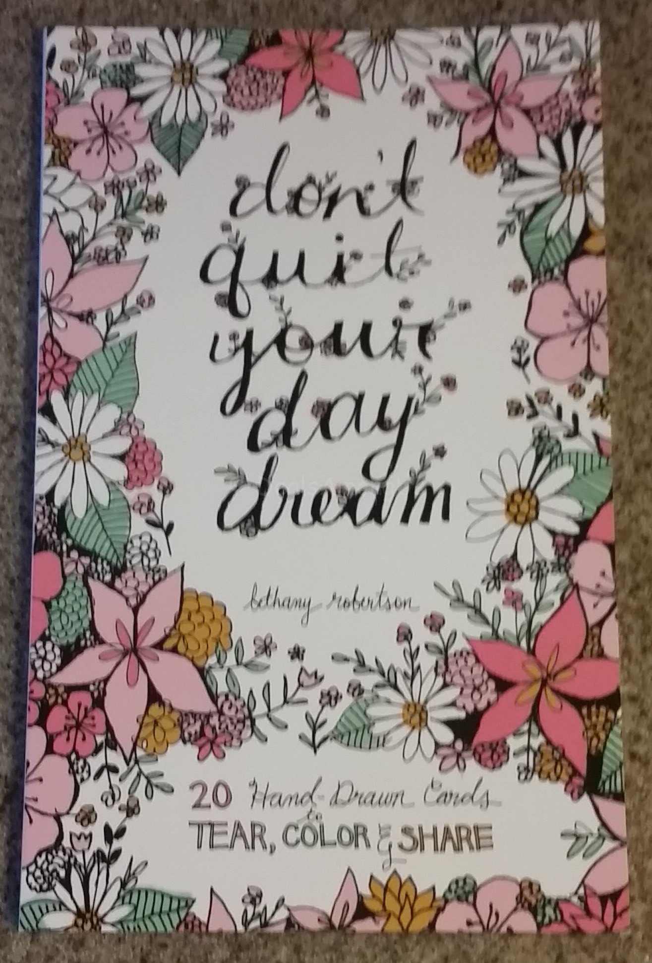 Don’t Quit Your Day Dream – 20 Hand-Drawn Cards to Tear, Color and Share: This is a cute variation on the adult coloring book trend. This book includes 20 hand drawn cards that you can tear out and send to someone in need of a pick me up. There are flowers, inspirational memes and simple images to color and are easy to remove to preserve the integrity of the cards.