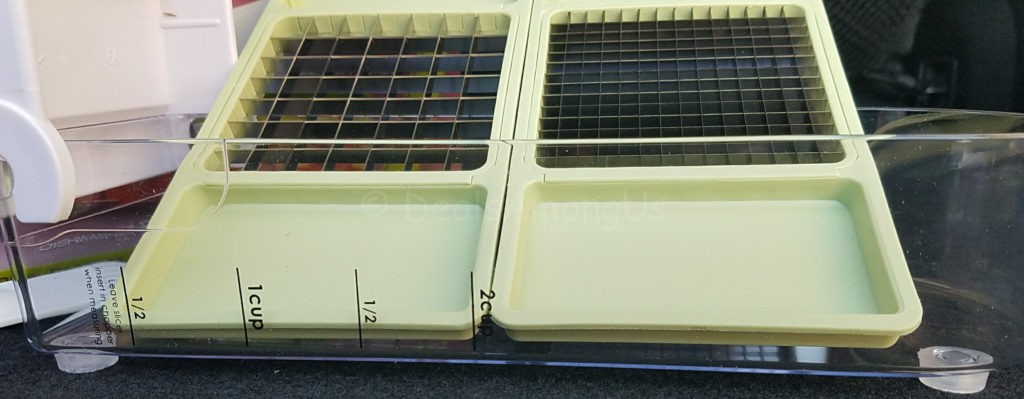 Also included is a tool that assists in cleaning the upper squares, although I did not see a lot of food getting stuck – I cut onions and a pepper with ease and no issues.