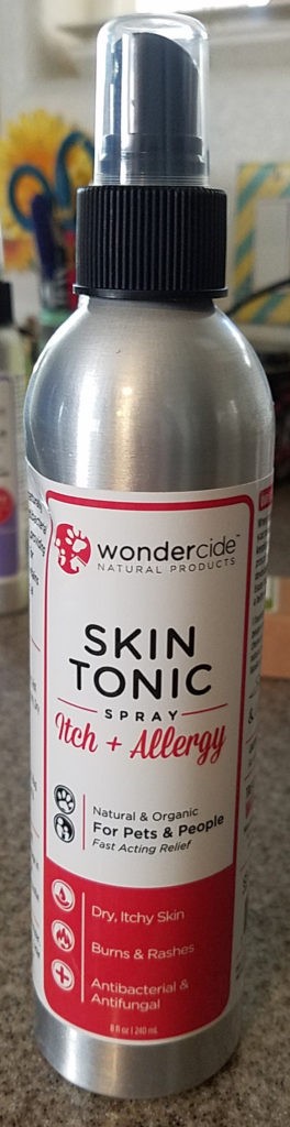 Skin Tonic Spray for Itch & Allergy – This is a human and animal safe spray that is ideal for hot spots,dry & itchy skin, skin irritations, blisters, ringworm, mites & mange. This is natural & organic and does not contain alcohol, no artificial colors or fragrances and is made with therapeutic-grade essential oils in the USA.